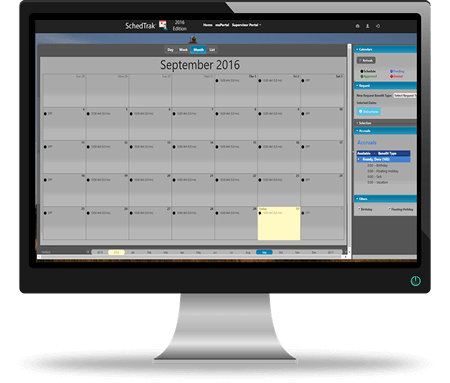 With TimeTrak’s intuitive on-screen scheduling feature, employees can easily manage their time off from dedicated kiosks or any workstation connected to the server. They can request vacation, comp time, and other benefits, check the status of pending requests, and view both current and uncommitted hours.
